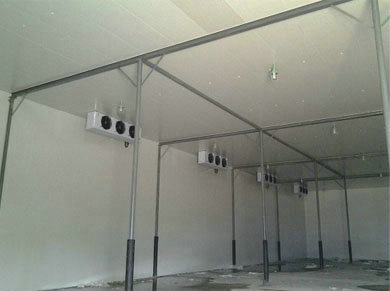 根據葡萄種植家庭農場的貯藏及使用需求,擬建葡萄水果冷庫40平方米,高5米,總容積為200立方米,預計可儲存無花果40-45噸左右。然后按照0~5度水果庫的儲存標準來建造,庫房五個面保溫將采用100㎜聚氨酯雙面彩鋼板保溫庫板,制冷機組配的10HP愛默生谷輪箱式頂出風風冷機組(含冷凝器、電磁閥等),冷風機為凱迪DL80系列冷風機(1臺)。